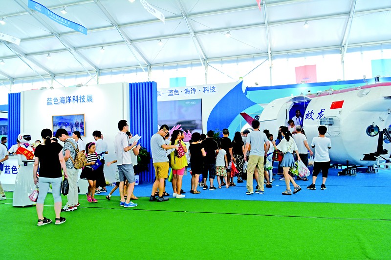 展示山東及青島推進新舊動能轉換、實施海洋科技自主創新的新成果,以及青島西海岸新區實施海洋戰略、率先藍色跨越的新亮點,山東·青島館處處藍色脈動。哈工程、北船重工、海西重機、華大基因、三泰集團等駐青高校、大企業集中亮相,展出海工裝備、船舶制造、海洋生物、海洋醫藥、基因工程、海水淡化等藍色科技創新發展技術,展現藍色經濟發展的宏偉藍圖。
